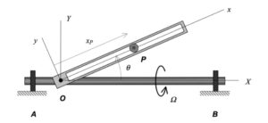 Step 3 – Kinematics: Use the polar kinematics descriptions of the acceleration of P. Note that r is constant for all time and Ω is constant.