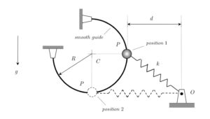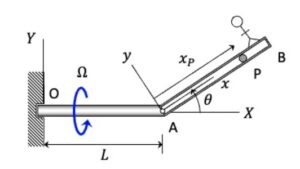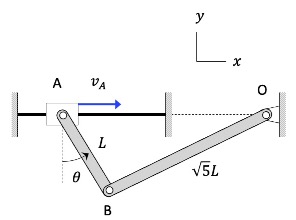 The kinematics for this problem are a little complicated. Recall that we studied these types of “constrained motion” kinematics problems back in Section 1.D of the lecture book. Here, we will now get to use the skills developed there in solving this problem in kinetics.