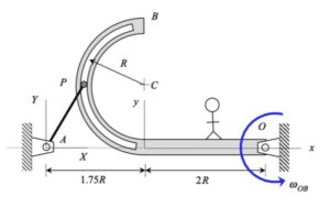 - And, shown above right is the motion of P as seen by an observer attached to the slotted arm. Note that the moving observer sees P moving on a circular path centered at point C.