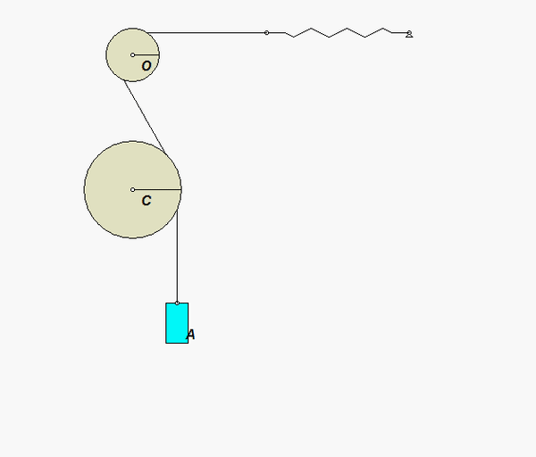 Draw individual free body diagrams for the pulley, disk and block A. Take note that the tension in the cable is NOT constant throughout its length. That is, the tension in each section of the cable needs to be represented by a different symbol. Consider the FBDs that follow. In these FBDs, Δ represents the amount of stretch in the spring.