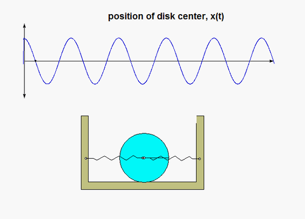 Take care in expressing the force on the disk due to the springs. The forces in those springs depend in magnitude on the relative displacements of the disk and the cart, with the direction of the spring force found by the thought process covered in lecture.