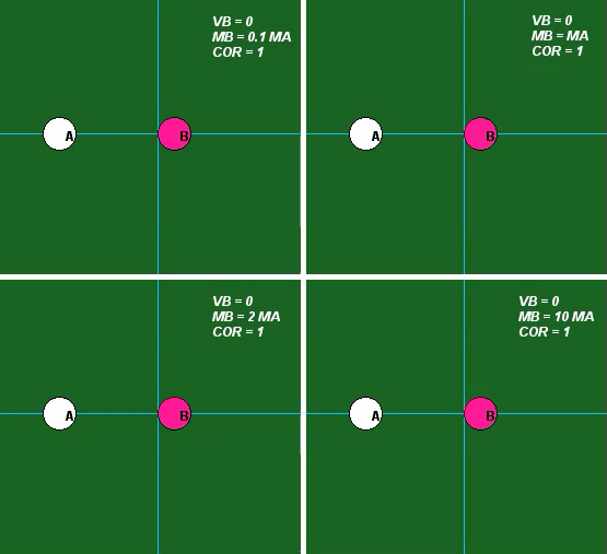 The influence of the value of COR is demonstrated in the following set of four animations for mA = mB. Please observe the following from these results: