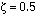 Shown below are three time histories for the free response of a single-DOF system with zero initial stretch in the spring and an initial velocity downward. These time histories correspond to damping ratios of 0, 0.1 and 0.5. (Recall that for oscillations to exist in the free reponse, the damping ratio must be less than one.) The most obvious influence of an increase of damping is the decay of the amplitude of the oscillations in time. In addition, the period of the decaying oscillations increases as the damping ratio is increased.