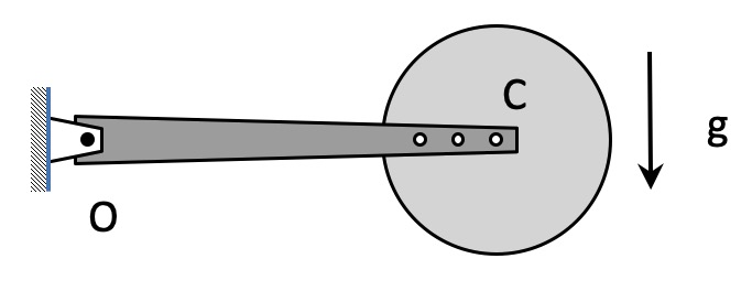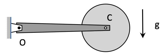Consider a problem similar to Example 5.B.7 described above, except here the disk is welded to arm OC. For this case, OC rotates about O and the disk both rotates and translates. Therefore, the initial potential energy of the system goes into rotational KE for the bar and both translational + rotational KE for the disk.