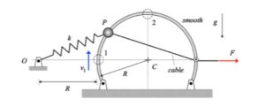 Step 3: Kinetics – In order to determine the work done on the system by the applied force F, you need to find the distance traveled by the end of the cable as P moves from position 1 to position 2. HINT: This distance is equal to the amount of cable that is pulled over the pulley as P moves from position 1 to position 2.