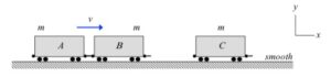For this problem using the linear impulse-momentum equation, work with the system of A+B+C as a whole when looking for motion. If you then need to find internal forces to the system, consider individual FBDs for the different bodies.