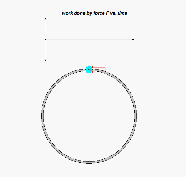 The constant applied force F acts only in the negative x-direction (where x is defined as being positive to the right). Therefore, as explained in the lecture book, the work done by F is simply the force multiplied by the distance traveled by the block in the negative x-direction. From the above animation of the simulation results, when the block is on the left side of the track, the work done is positive, and when the block is on the right side of the track, the work is negative. The work done by F is to be found in the Step 2 of your analysis.