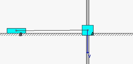 Write down the work energy equation for the system of A+B+bar. The KE will be the sum of the KEs of A and B. The PE will be the sum of the PEs for A and B.