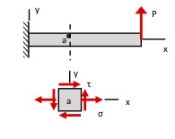 The transverse load P will produce a shear force V in the positive y direction on a mathematical cut through the beam at point “a”. This shear force is directly responsible for the shear stress τ on the x-face of a stress element at “a” in the positive y-direction. In class, we have used the Euler-Bernoulli theory of beams to calculate this shear stress. Recall that the E-B theory of beam assumes that beam cross sections always remain perpendicular to the neutral plane of the beam.