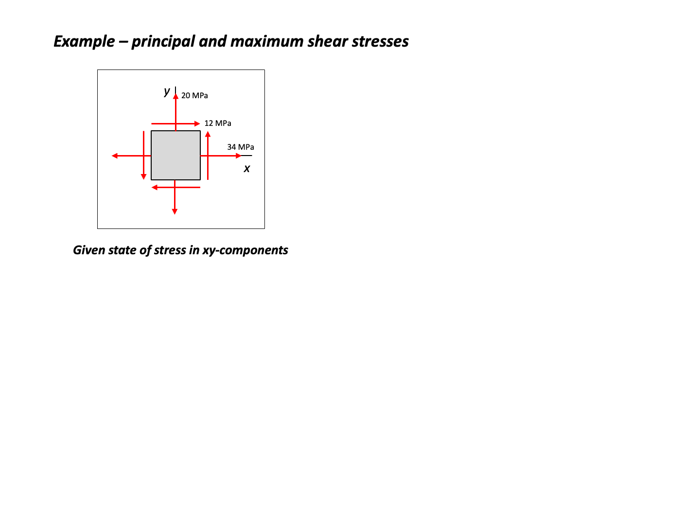 Consider the following video that summarizes the usage of Mohr’s circle for determining principle components of stress and absolute maximum shear stress components. (View YouTube video instead)