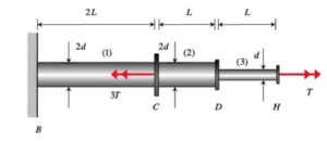 Use the torque/rotation equations and compatibility to determine the rotations of C, D and H.