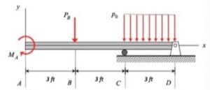 Use your results from the bending moment diagram to determine the location along the length of the beam for the maximum bending moment. Use the flexural stress equation, σ = -My/I, to determine the location(s) of the beam cross-section having the maximum flexural stress.