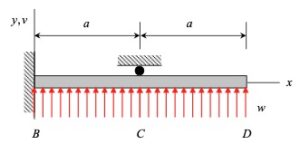 The key step with the superposition approach is breaking down the problem into subsystems for which you are able to look up expressions for deflections. Here it is recommended that you break down the original problem into two beams: one being a cantilevered beam with a line load, and the second being a cantilevered beam with a point load at point C. Sum together the expressions for beam displacements, and determine the reaction force at C through the enforcement of zero displacement at C.