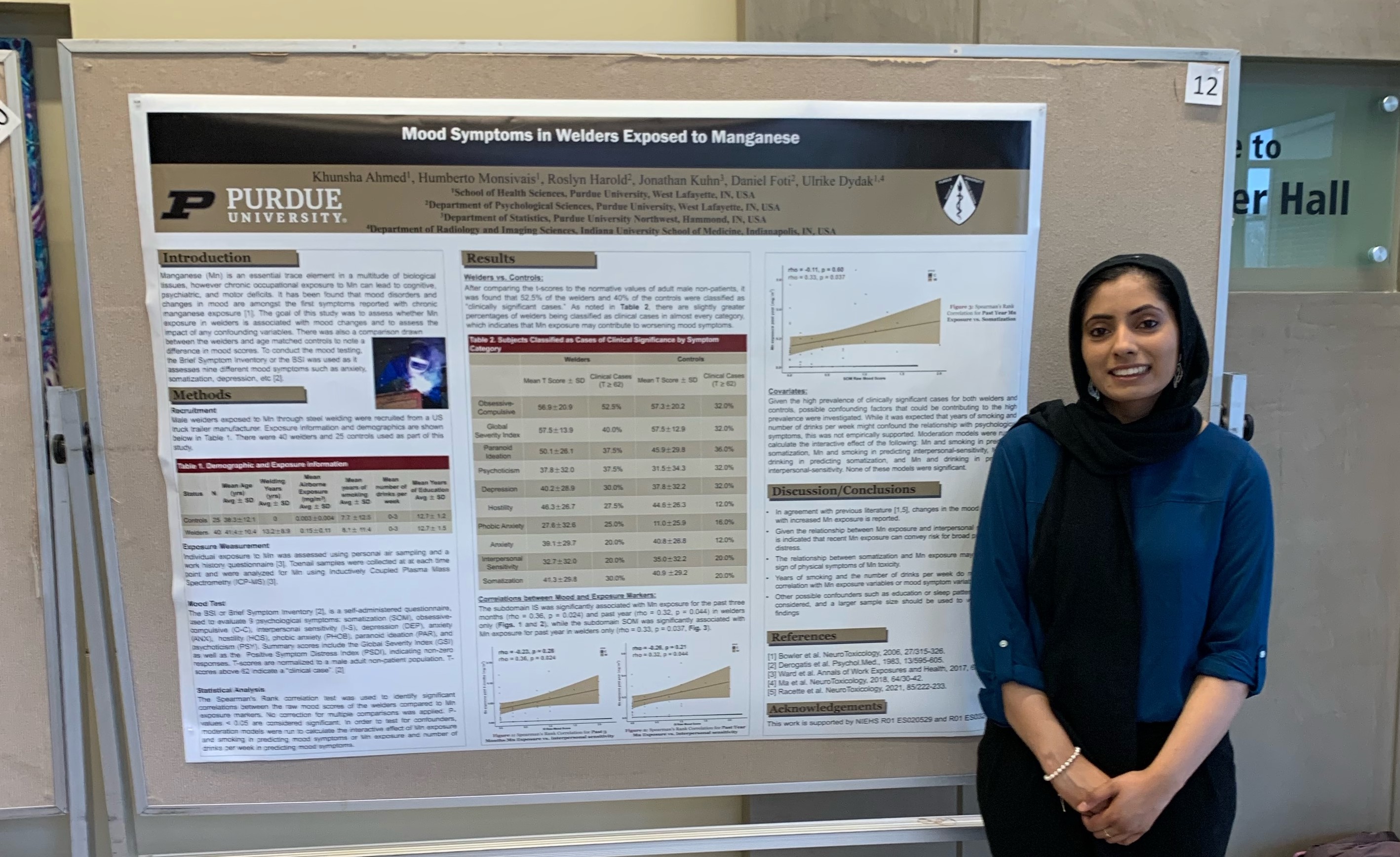 Khunsha Ahmed, undergraduate student in Professor Ulrike Dydak's lab, presented her research poster titled: Mood Symptoms in Welders Exposed to Manganese