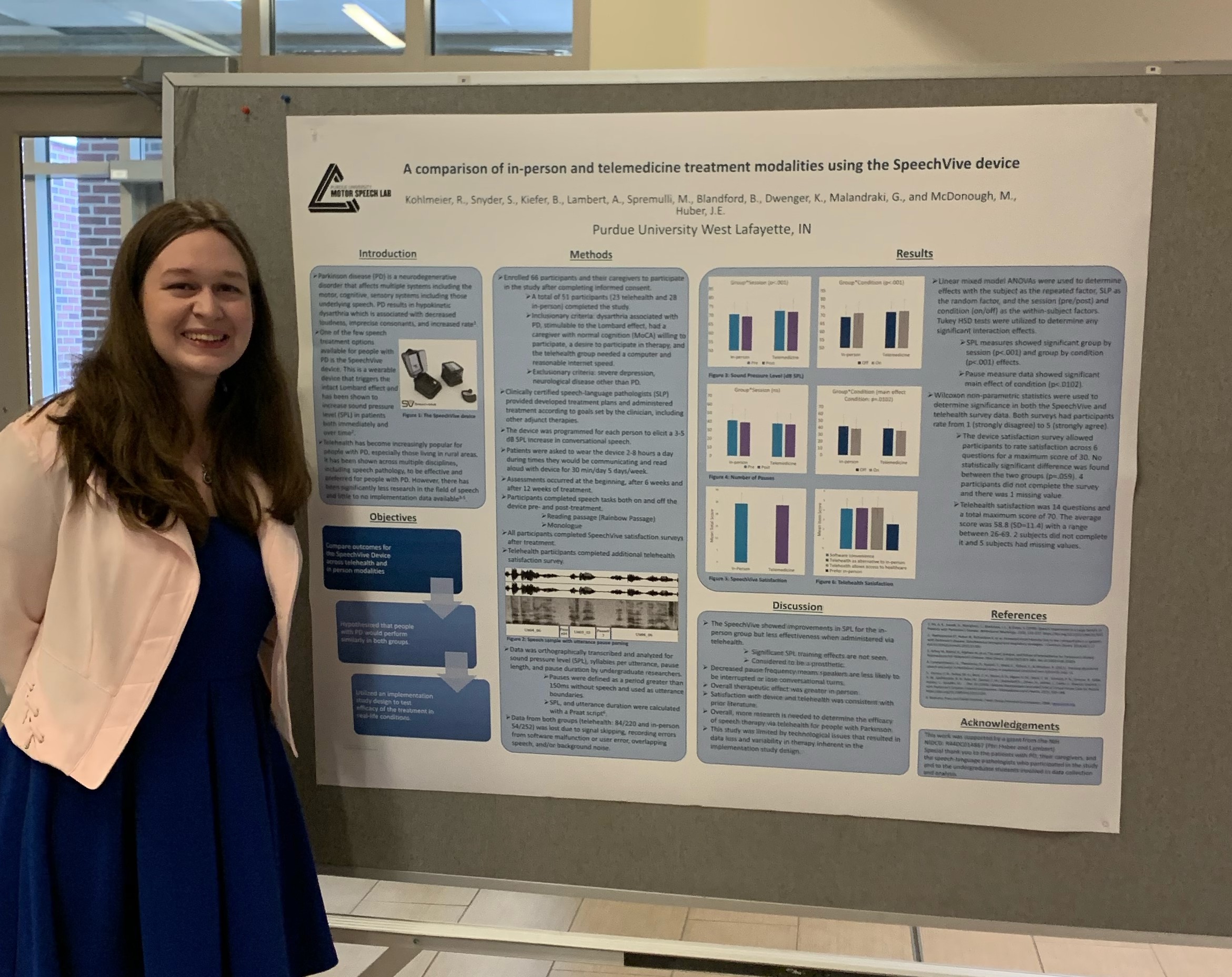 Renee Kohlmeier, undergraduate student in Professor Jessica huber's lab, presented her research poster titled: A Comparison of In-person and Telemedicine Treatment Modalities Using the SpeechVive Device
