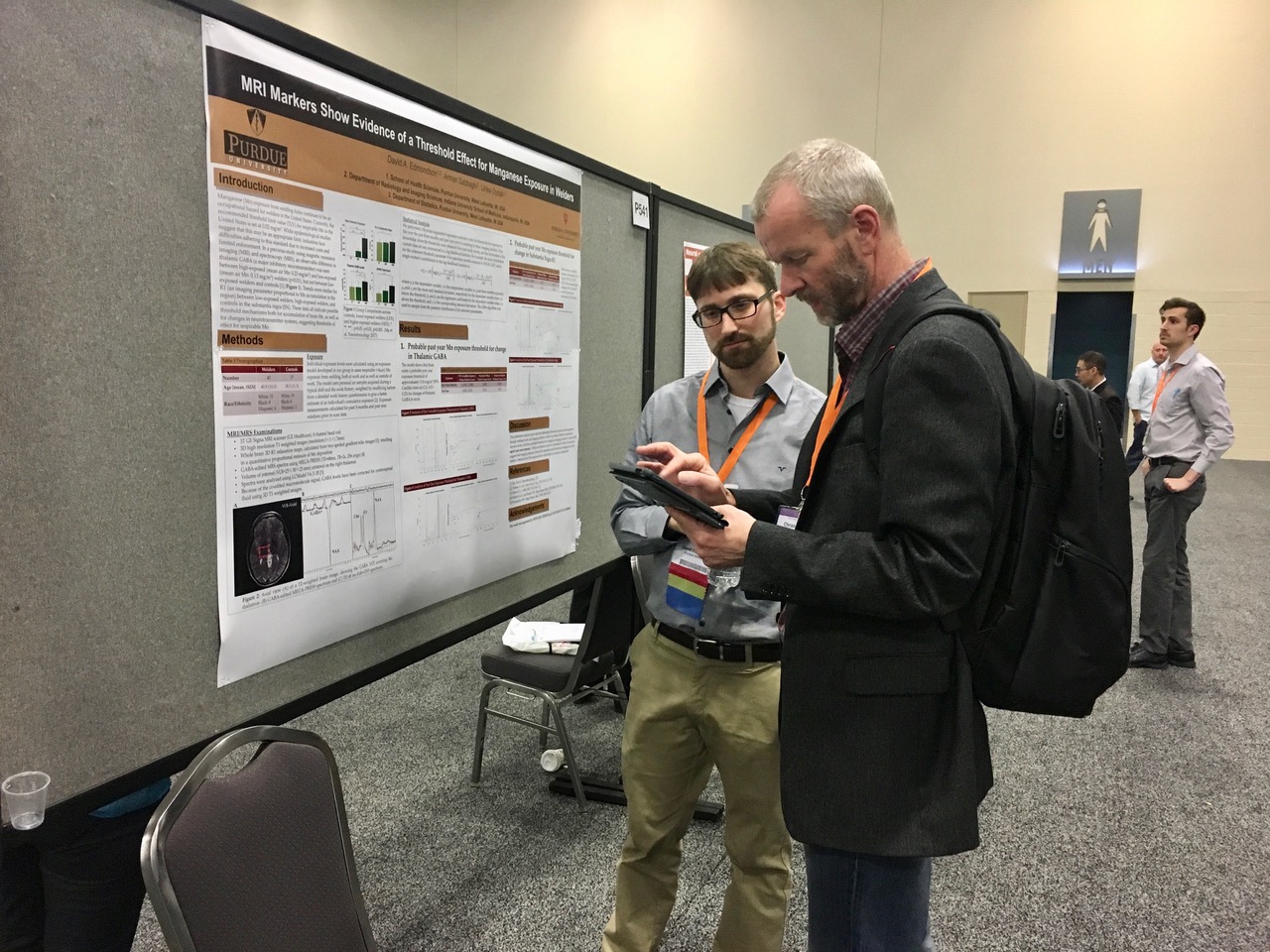 - David Edmondson discussing his poster with Dr. Christoph Van Thriel at SOT 2018 in San Antonio, Texas