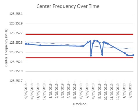 - Over the past 3 months the center frequency has drifted by 50 Hz = 0.41 ppm