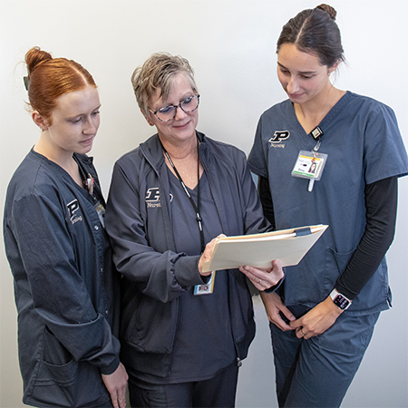 Service-learning is deeply integrated across the Purdue University School of Nursing, extending beyond the classroom to engage students with the community. In many public health and other courses, students engage in clinical rotations at locations such as the Lafayette Transitional Housing Center’s LTHC Homeless Services, the Indiana Veterans’ Home, Tippecanoe Villa and local schools within Greater Lafayette. The experience and hands-on care the students provide serves as a crucial element for both character development and career preparation.