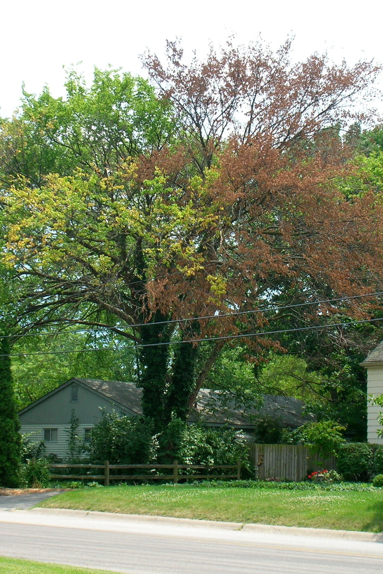 Control: Management of these pests are most effective when elms in a community are managed in a coordinated plan that includes inspecting for trees with yellowing branches, and dead and dying trees. Beetles are controlled by managing the places where they breed. Trees recently killed or dying (>30% yellowed canopy) from Dutch Elm disease must be removed and destroyed by chipping or burning prior to April 15. This kills beetles developing in breeding logs before they fly to spread the disease.