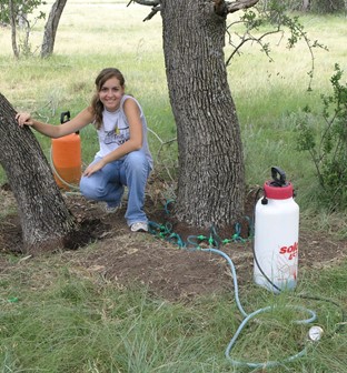 On high value plants, the therapeutic use of chemicals or other treatments is an option of increasing importance in the landscape. Therapeutic application of fungicides to cure the already infected plants is an approach mostly limited to high value trees and has been successfully employed to treat Dutch elm disease, oak wilt (Fig. 19), sudden oak death and emerald ash borer. In all cases, certain limitations apply, and only early infections/infestations can be managed or prevented.