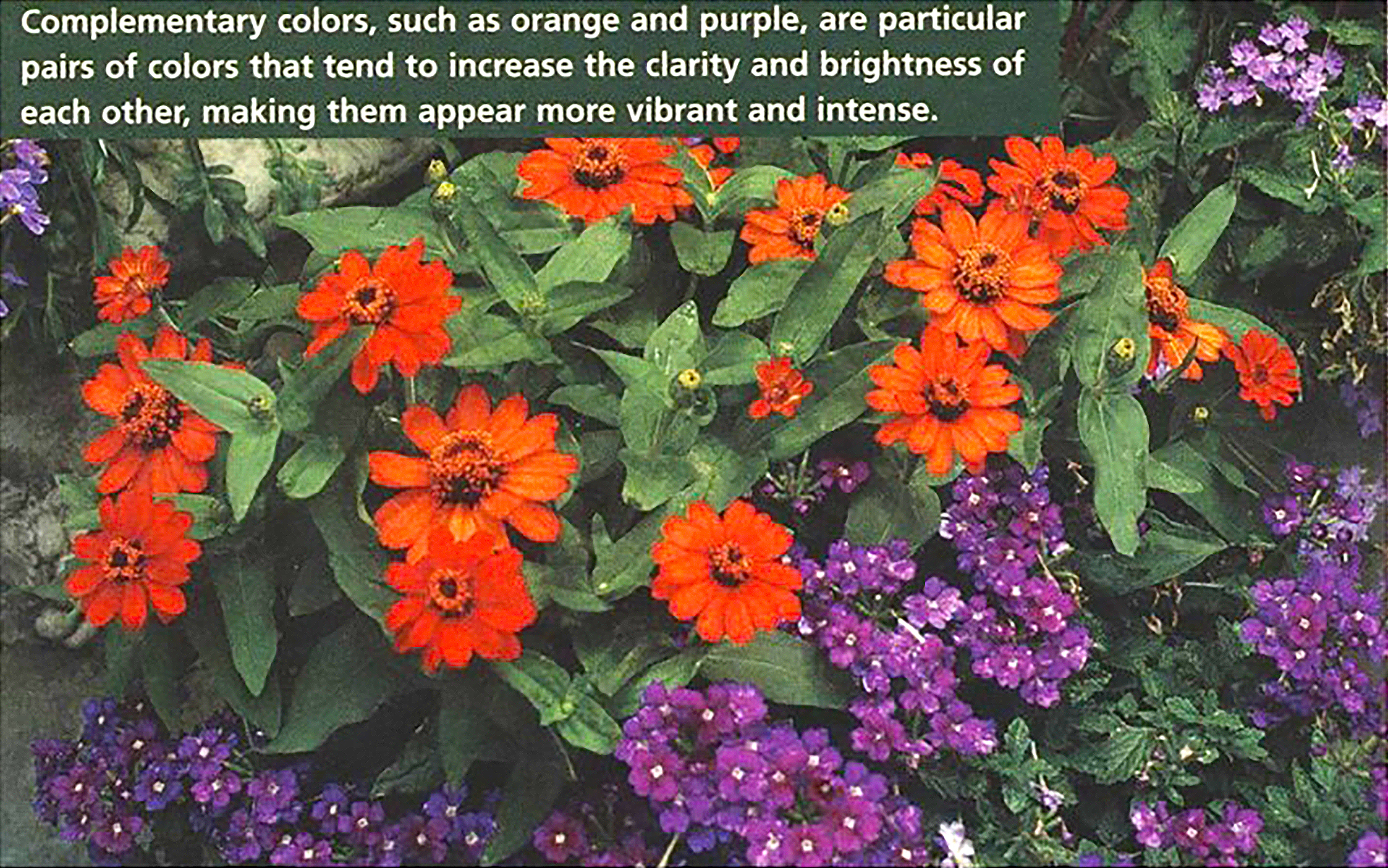 Creating color contrasts in the garden tends to be a bit more difficult. Using complementary colors is a rather straight forward and effective way to incorporate color in the garden. Complementary colors are particular pairs of colors that tend to increase the clarity and brightness of each other, making them appear more vibrant and intense. Yellow, for example, may be introduced to a blue garden (yellow’s complementary color is blue), creating a very pleasing contrast. Orange flowers work nicely with purple, again a complementary pairing.
