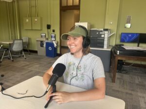Grace Lentz recording an episode of the Living Landscapes Podcast.