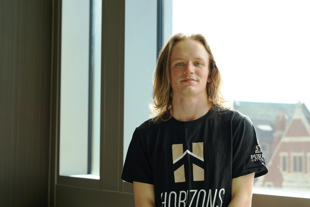 Purdue senior and Horizons tutor Anthony Sinclair stands in Krach Leadership Center