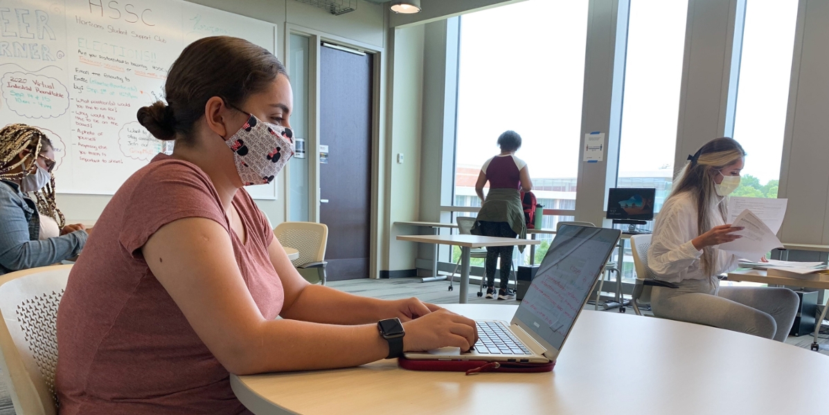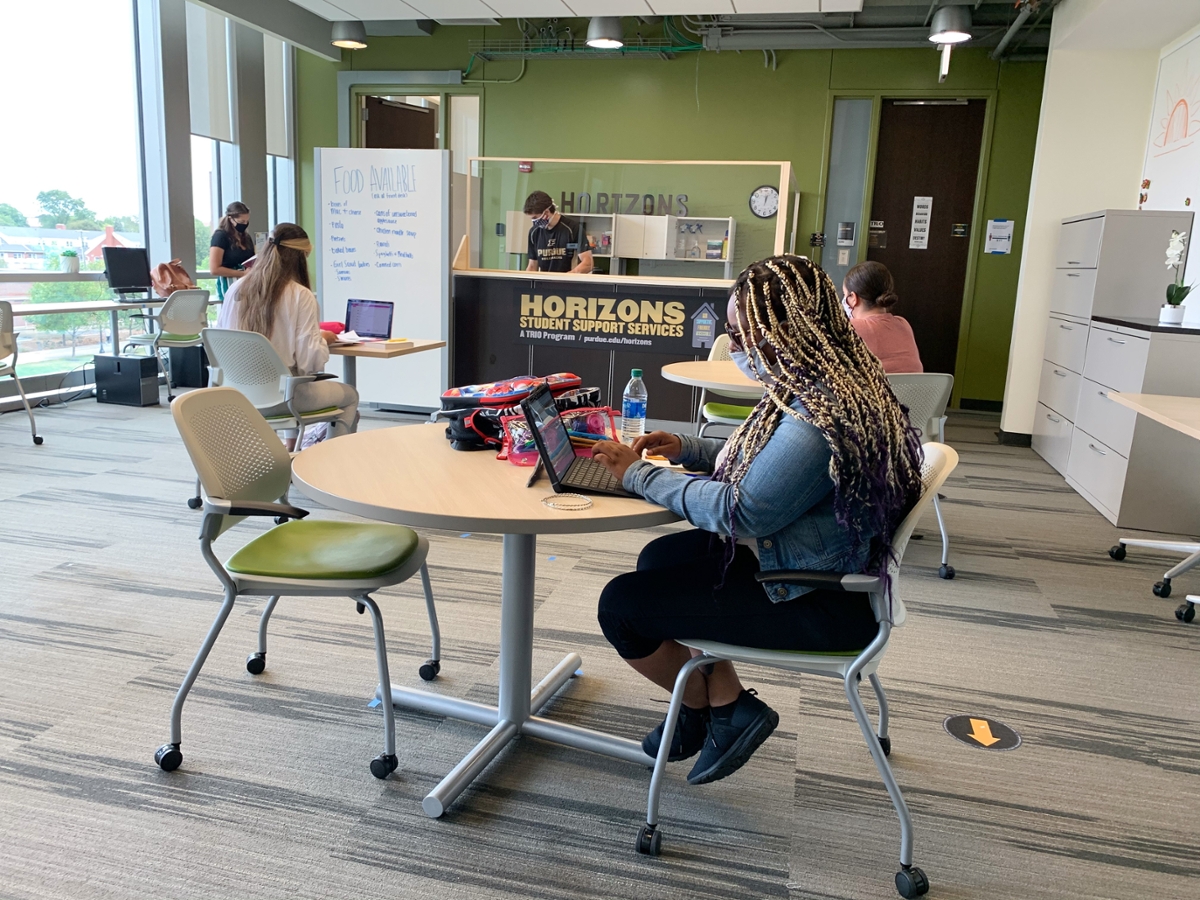 Students study in the Horizons office space, located on the 3rd Floor of Krach Leadership Center