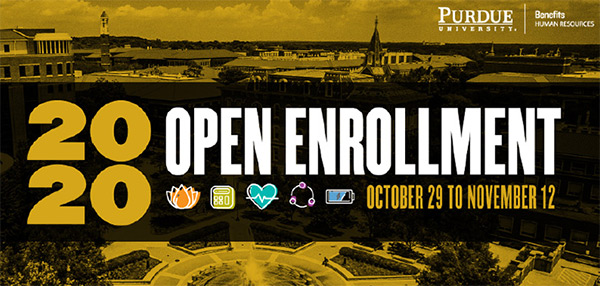 Open enrollment questions can be directed to the HR Benefits Service Center at 765-494-2222, toll-free at 877-725-0222 or via email at hr@purdue.edu. Regional employees can contact their respective Human Resources departments: Fort Wayne – 260-481-6840 and Purdue Northwest – 219-989-2251.