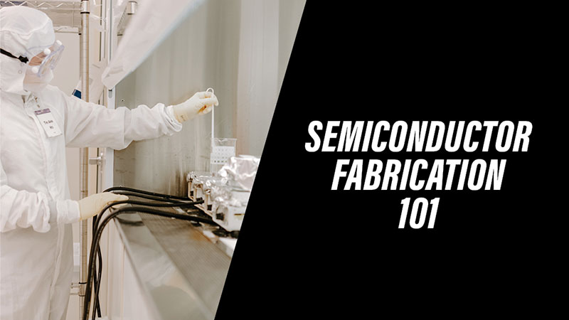 Topics covered in Semiconductor Fabrication 101 include semiconductor device basics, the semiconductor ecosystem, chip design, oxidation, thermal diffusion and ion implantation, wet and reactive ion etching, lithography, thin film deposition, chemical mechanical polishing and interconnects, and advanced packaging.