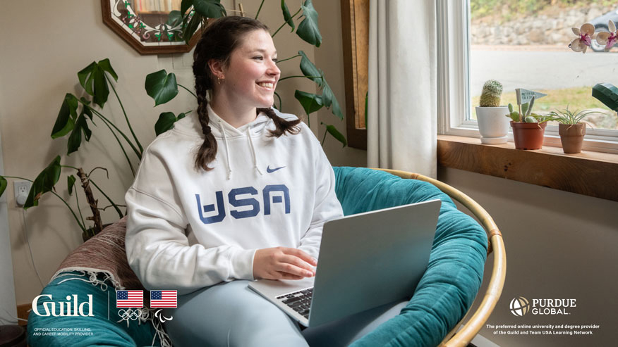 She is also preparing for another type of life-changing adventure: She’s now a college student, thanks to an educational partnership between Guild and Team USA that offers eligible Team USA members access to online classes at Purdue Global, which is the preferred online university and degree provider of the Guild and Team USA Learning Network.