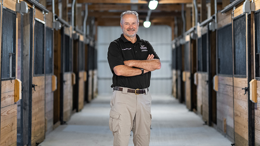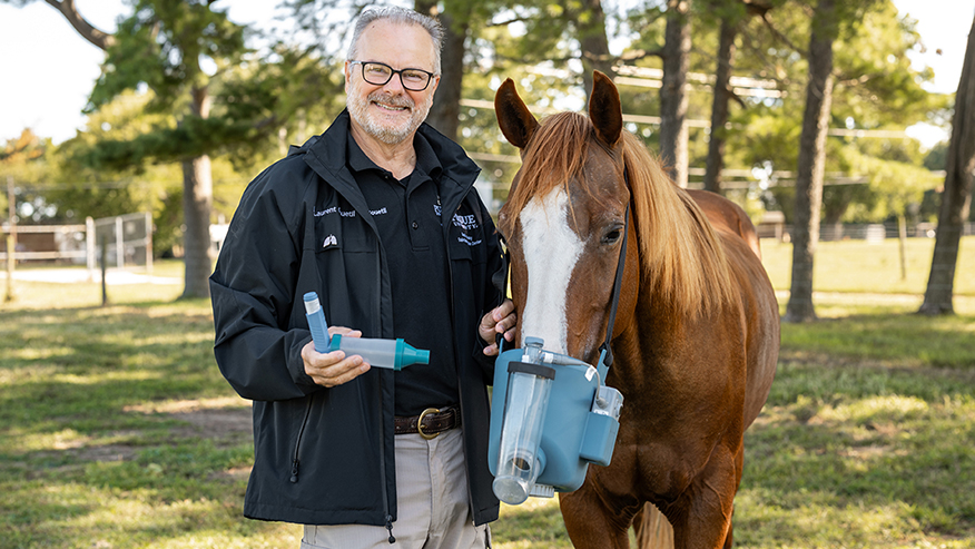 Equine asthma expert Laurent Couëtil of Purdue University studies asthma solutions that help both horses and humans breathe easier. (Purdue University photo/Kelsey Lefever)