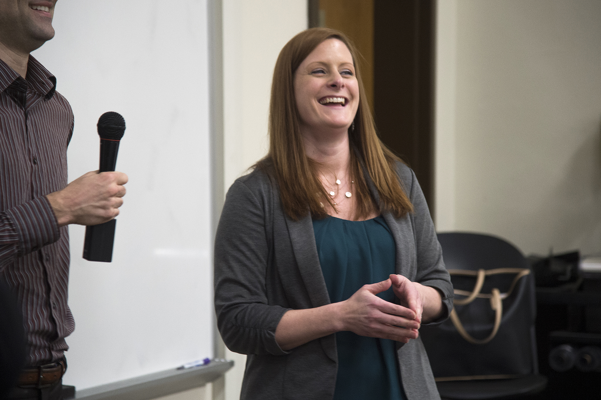 James Jenkins, associate professor of construction management, has been named the recipient of a 2016 Outstanding Undergraduate Teaching Award in Memory of Charles B. Murphy, and Jessica Cabral, assistant clinical professor of construction management, has received the 2016 Exceptional Early Career Award. Jenkins and Cabral were surprised with the news on Friday (March 25).