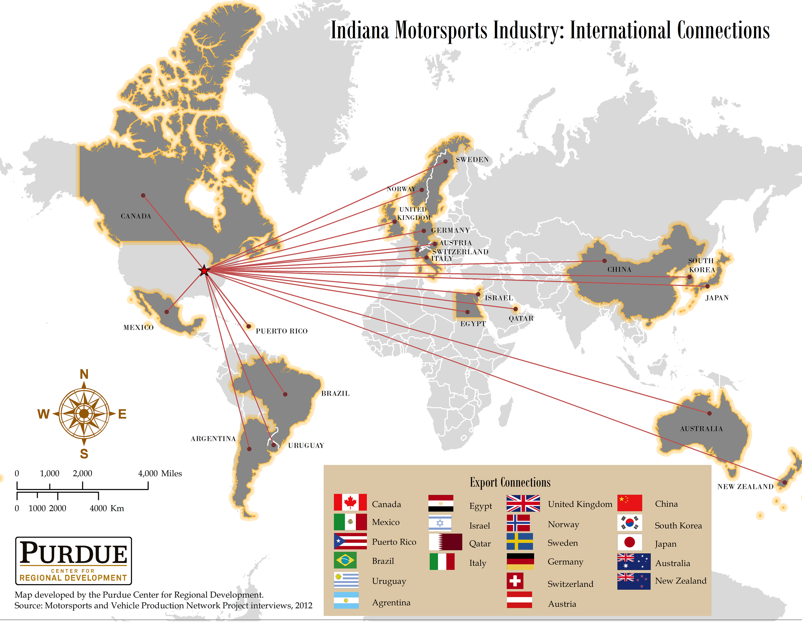 "Racing teams based in Indiana travel all over the country for races, bringing dollars back. Companies that are involved in supplying the motorsports cluster are also sending their wares around the globe with customers in more than 20 countries," Helmling said.