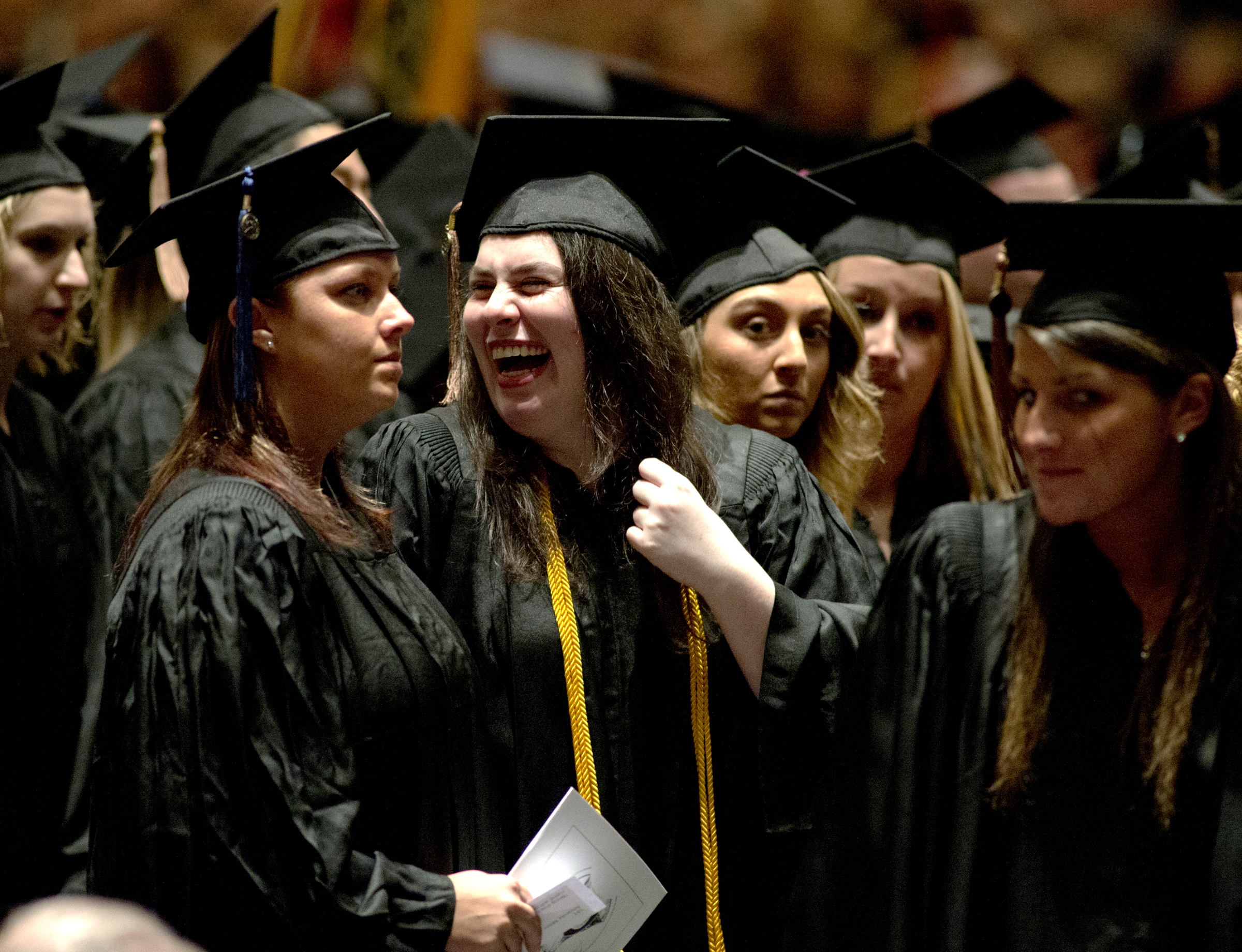 Graduates were all smiles as they took part in Purdue University commencement ceremonies Sunday (Dec. 16) in Elliott Hall of Music on campus. About 2,750 students were candidates for degrees. (Purdue University photo/Mark Simons)