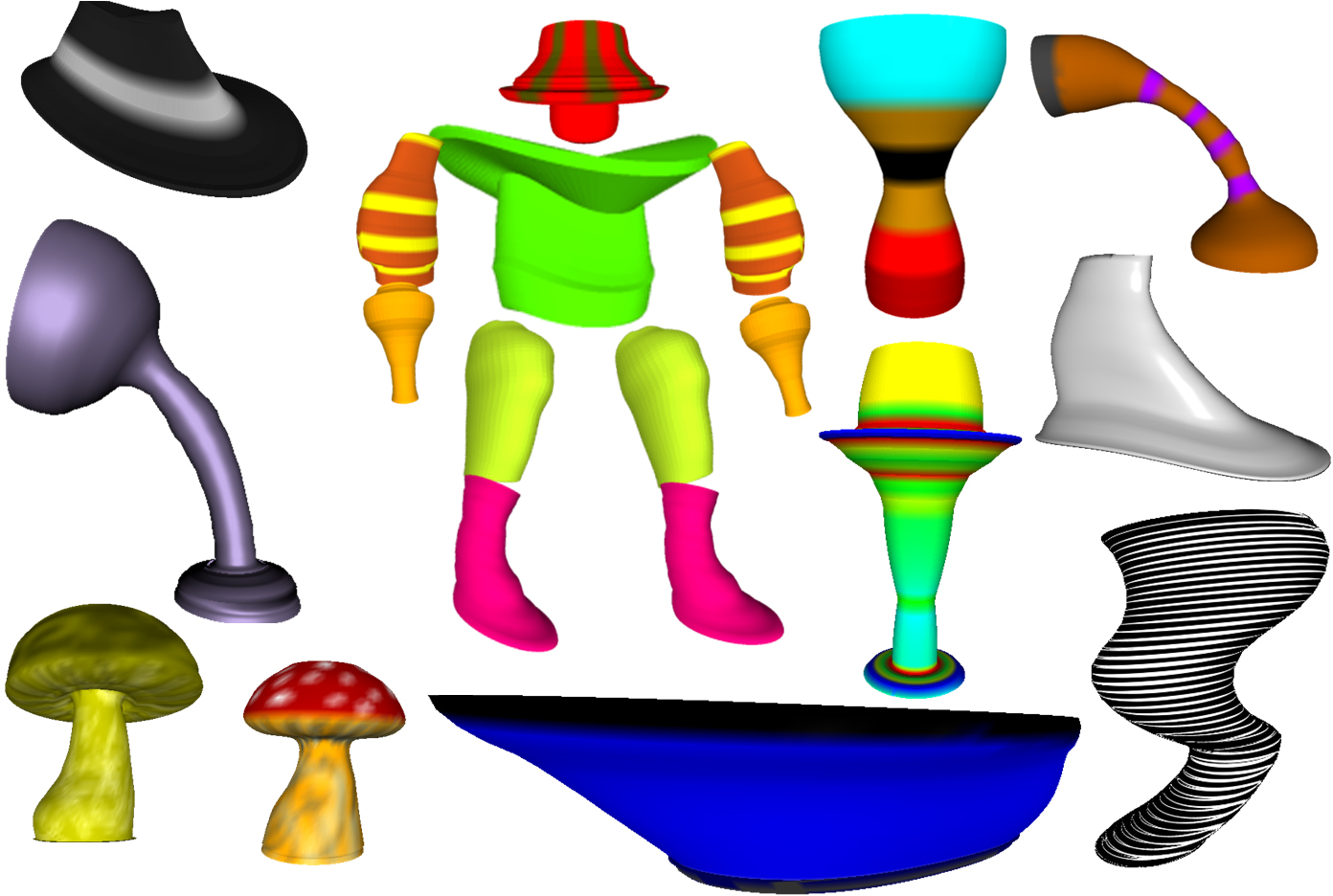 Shapes like these can be created using a new design tool that interprets hand gestures, enabling designers and artists to create and modify 3-D shapes using just their hands as a "natural user interface" instead of keyboard and mouse. The tool was created by Purdue researchers. (Purdue University image/ C Design Lab) |