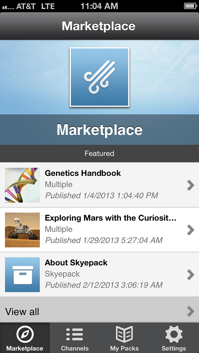 Skyepack is a mobile educational content authoring and distribution platform that enables instructors and subject matter experts to easily create media-rich learning materials that are published to mobile devices and the Web. Skyepack enables a "learn-as-you-go" study methodology by not requiring a Wi-Fi or LTE connection to view the material and provides instructors with valuable feedback about student usage and impact.