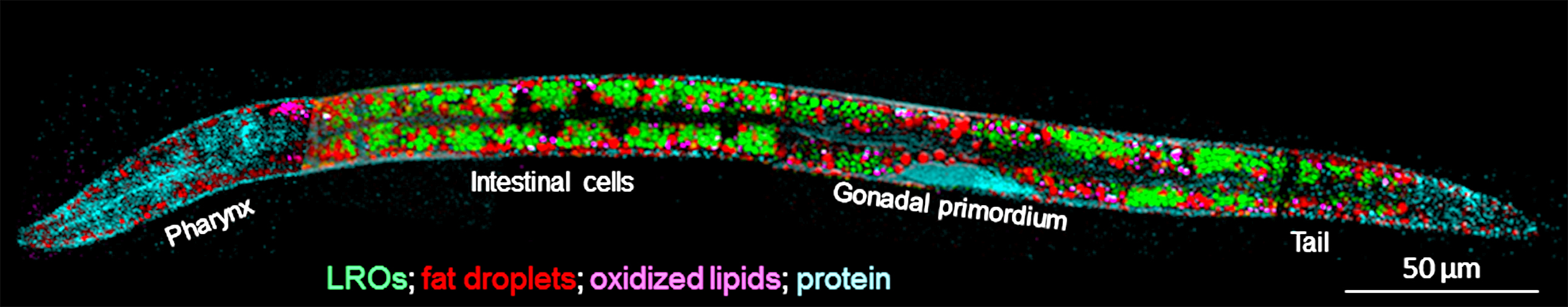 "This work is a result of a successful collaboration between our labs. The new technology has allowed us to observe changes in lipids in a live animal," Tissenbaum said. "Most analyses of lipids examine the composition of whole animal extracts. Now, we can observe changes in the different tissues in real time. Now, we can answer the important questions of how lipid stores change in response to diet and age."