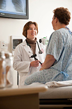 A medical student works with a standardized patient during a simulation of a clinical experience. (Photo courtesy of Albany Medical College/Mark McCarty) |