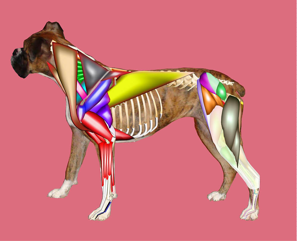 The Active Lesson LLC app template was used to create a lesson in canine anatomy that highlights muscle groups for veterinary students. The technology was developed and commercialized by Kevin Hannon, founder of Active Lesson and associate professor of basic medical sciences in Purdue's College of Veterinary Medicine. (Image provided) |