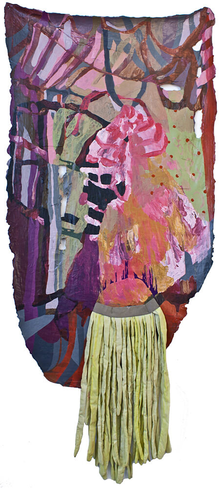 Erin Castellan (Asheville, NC) – Hang, 2011, 66” x 24,” acrylic/latex paint, thread and fabric. |