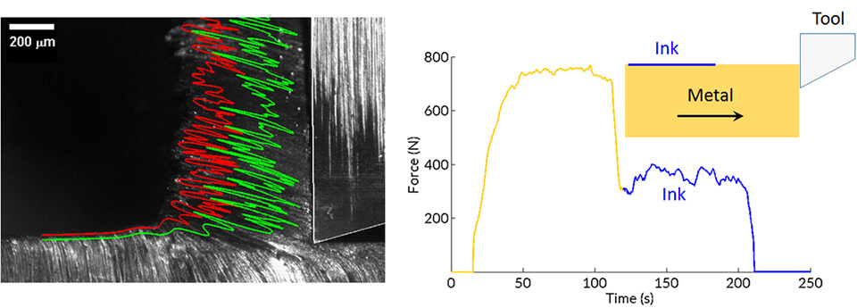 Findings showed the cutting force can be reduced 50 percent simply by painting metal with a standard marking ink. Because this painted layer was found to suppress sinuous flow, the implications are that not only can energy consumption be reduced by 50 percent but also that machining can be achieved faster and more efficiently and with improved surface quality, Chandrasekar said.