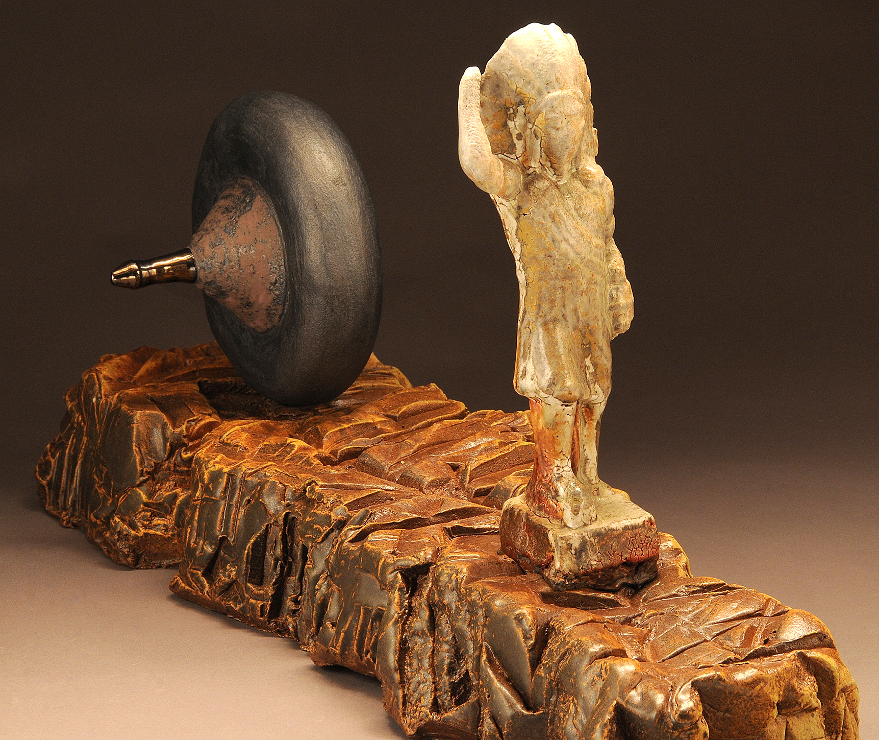 Keith Ekstam (Kansas City, MO), Manifest Destiny-Scholar Toys Series, wood-fired and low-fired stoneware, 15-by-28-by-10 inches. (“360 Degrees of Separation” exhibit) (Photo provided) |