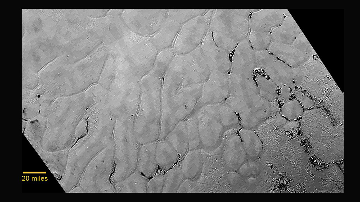 The polygons of Pluto's Sputnik Planum region are shown in an image captured by the Long Range Reconnaissance Imager (LORRI) on NASA's New Horizon’s spacecraft. (Image courtesy of NASA/Johns Hopkins University Applied Physics Laboratory/Southwest Research Institute)