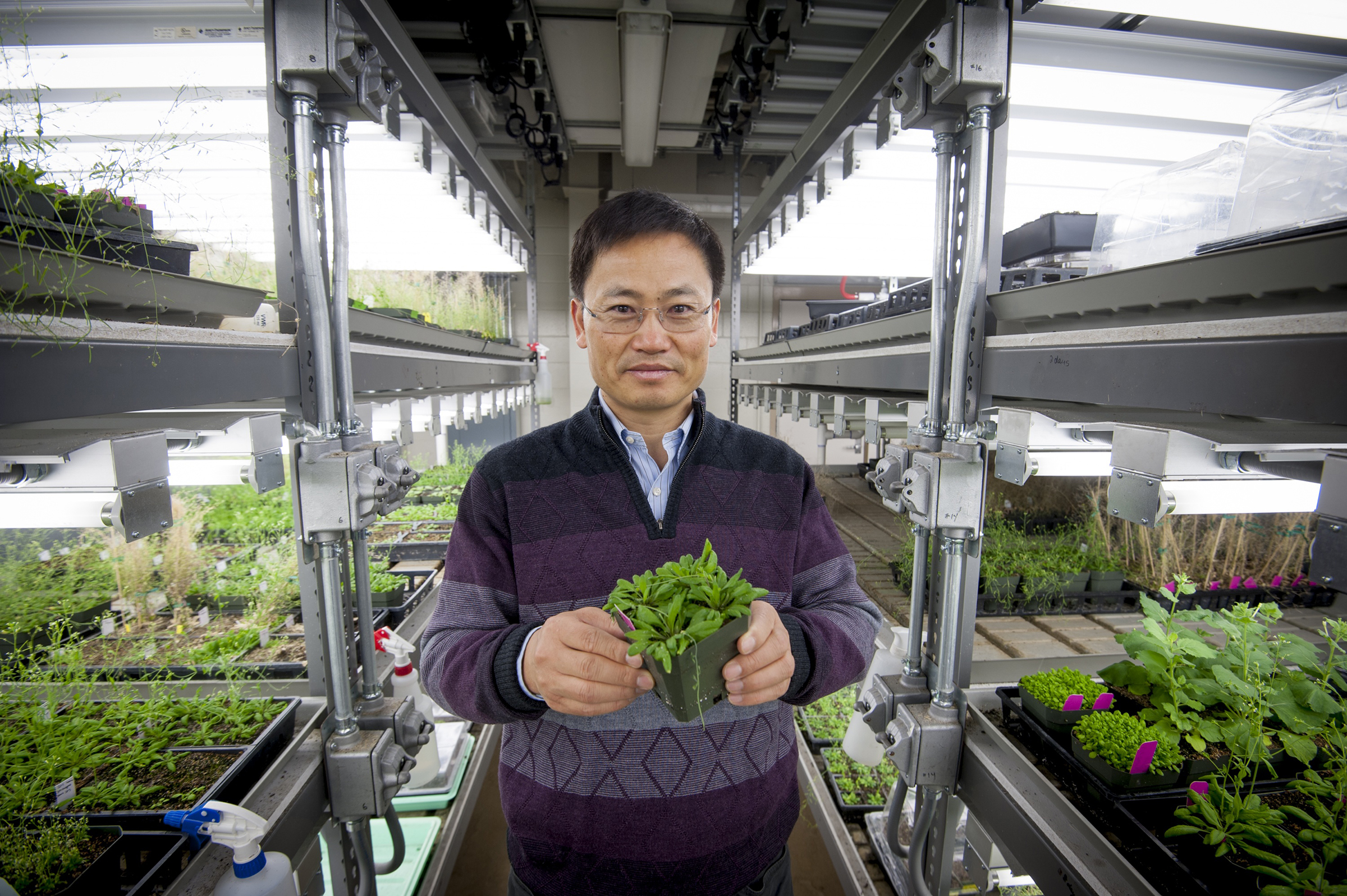 Jian-Kang Zhu, distinguished professor of plant biology, studies how plants respond to harsh environments - how they manage to survive in the face of drought, too much salt in the soil or when temperatures are too hot or cold. (Purdue Agriculture/Vincent Walter)