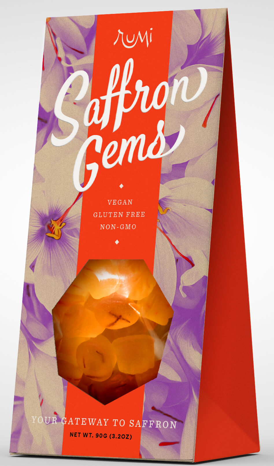 The candy, which is called “Saffron Gems,” is made of natural ingredients, including organic tapioca syrup, organic evaporated cane juice, pectin, citric acid, carnauba wax and premium Afghan saffron. The product is designed to be naturally vegan friendly.