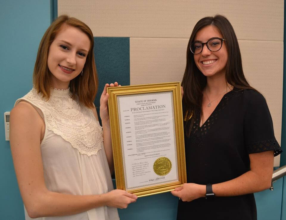Michelle Higgins and Olivia Walker, both students in Purdue’s College of Pharmacy and members of the American Pharmacists Association-Academy of Student Pharmacists (APhA-ASP), were instrumental in securing the proclamation.