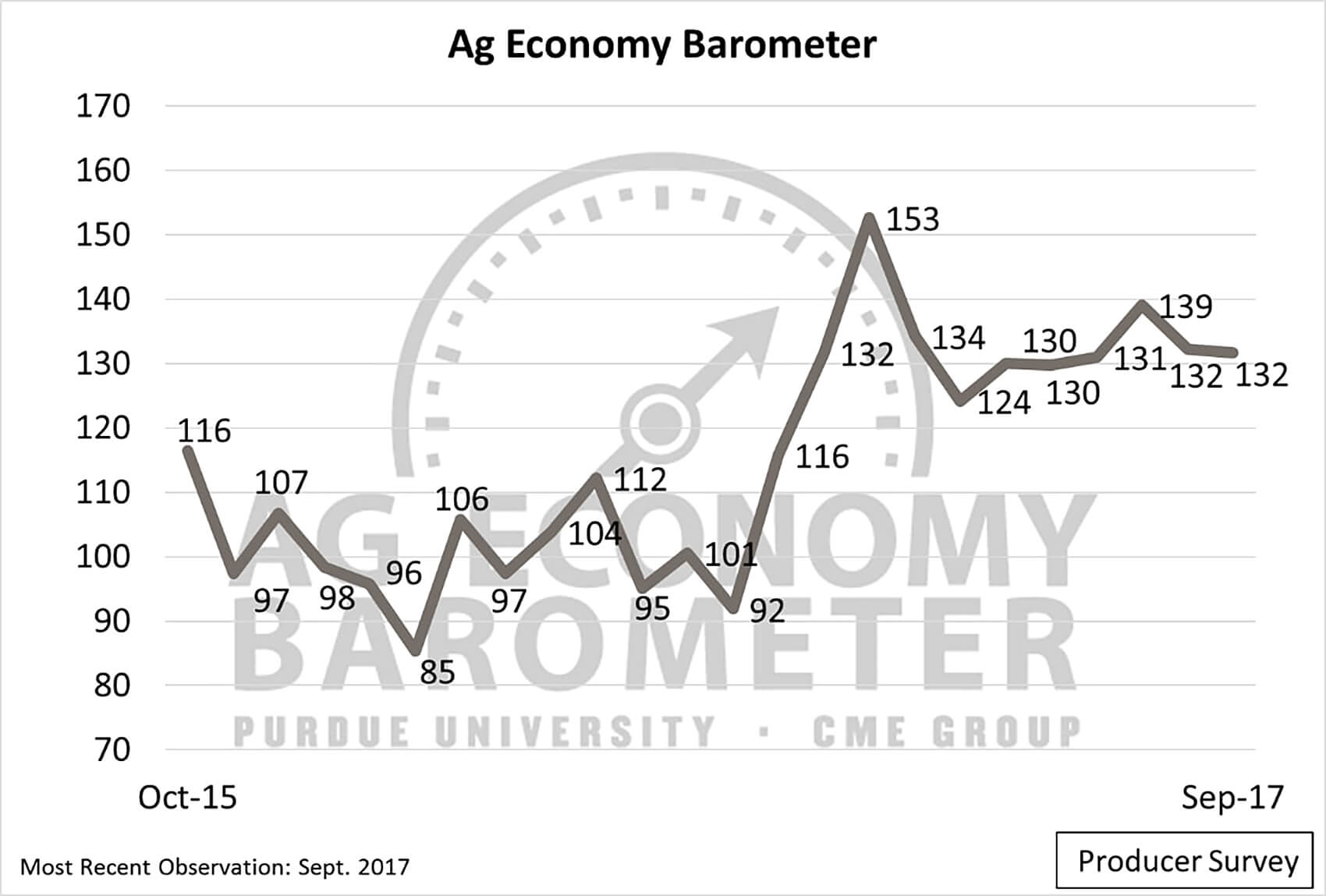 WEST LAFAYETTE, Ind. and CHICAGO - Producers’ optimism about the future of the agricultural economy fell in September, according to the Index of Future Expectations, a sub-index of the Purdue University/CME Group Ag Economy Barometer.