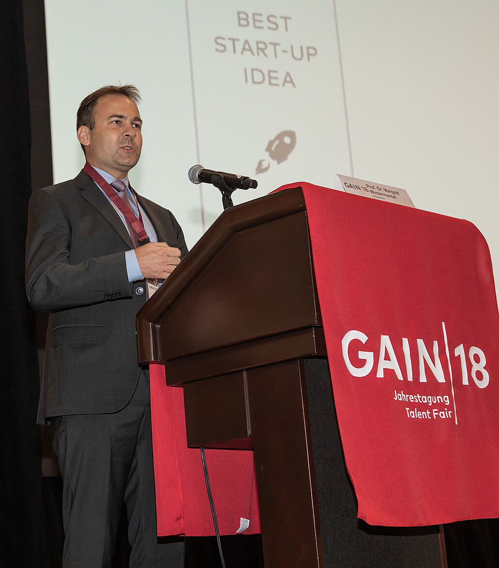 Oliver Wendt, inventor of SPEAKall! and SPEAKmore!, speaks at the GAIN 18 conference before winning GAIN 18 Award for best technology. (Photo provided)