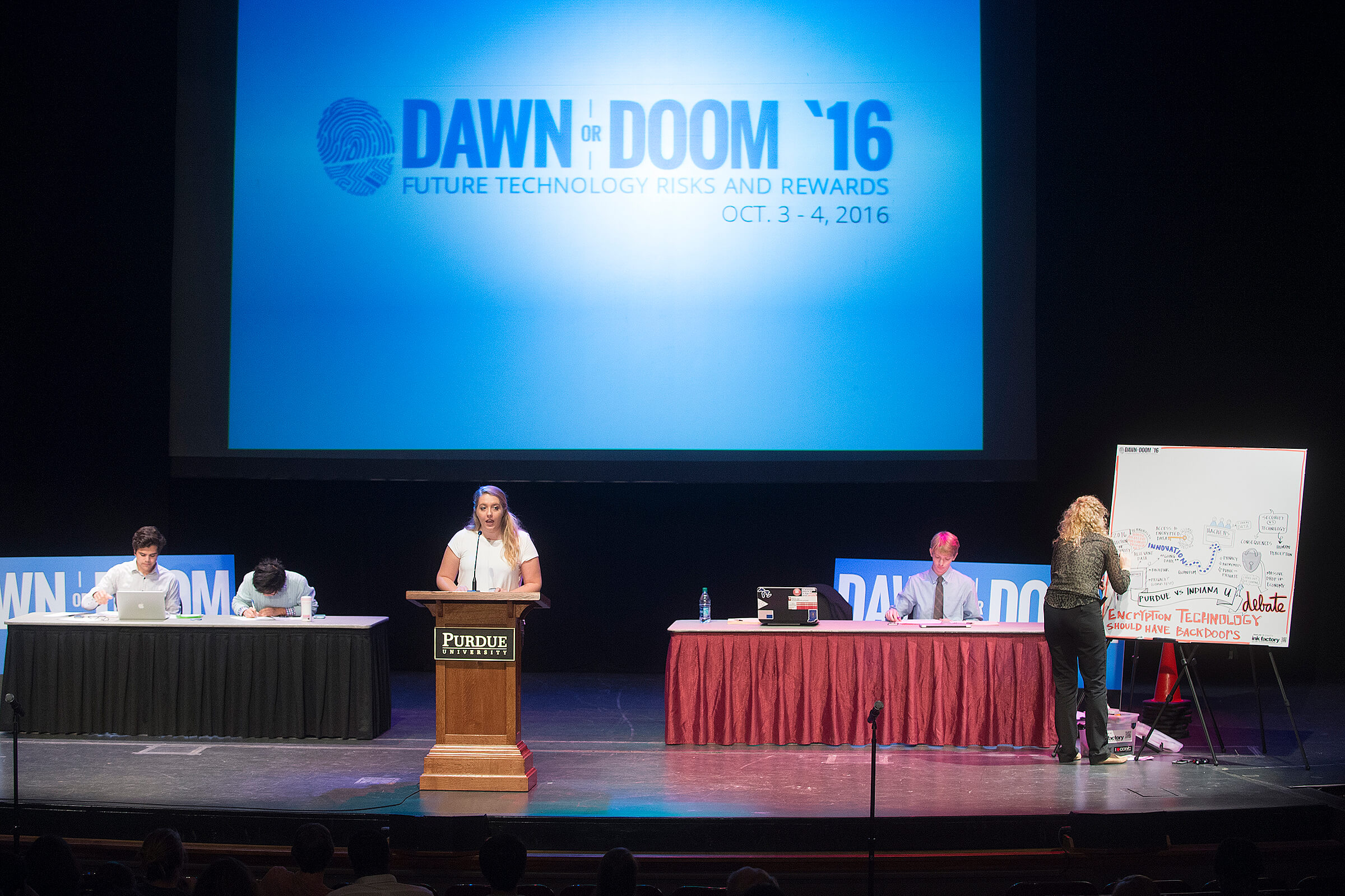The debate is a part of Purdue’s celebration of its 150th year and specifically of the anniversary’s Ideas Festival, the centerpiece of Purdue’s Giant Leaps Sesquicentennial Campaign. The Ideas Festival will feature a series of events that connect world-renowned speakers and Purdue expertise in a conversation on the most critical problems facing the world. Al, Algorithms and Automation: Balancing Humanity and Technology is one of the Ideas Festival themes.